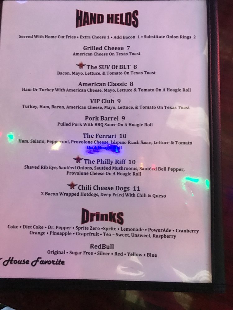 American cheese on Texas toast. Add bacon, ham or turkey for an additional price.